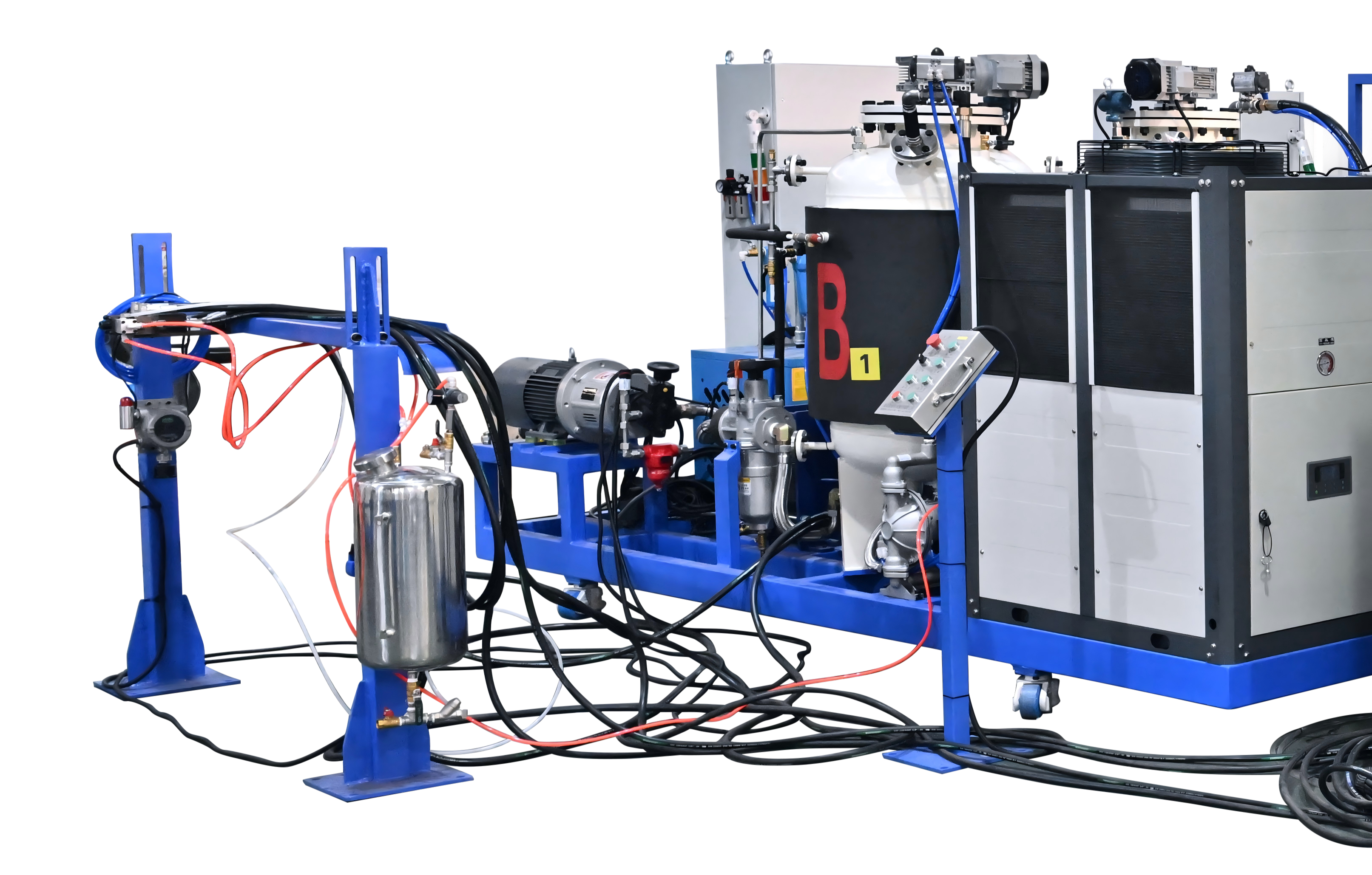 這款布料機(jī)是領(lǐng)新自研的產(chǎn)品,搭配聚氨酯發(fā)泡機(jī)進(jìn)行使用,固定設(shè)備機(jī)頭在軌道上進(jìn)行左右移動(dòng)澆注,性能穩(wěn)定、低勞工操作簡(jiǎn)便、生產(chǎn)效率高。